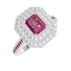 « L'ATELIER » Nº 1063243Bague Or blanc 18 carats - Rubis synthétique Rectangle 0.5 carat - Halo Diamant synthétique - Sertissage Rubis