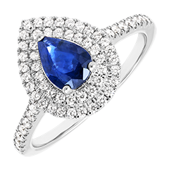 Bague Or blanc 9 carats - Saphir synthétique Poire 0.5 carat - Halo Diamant synthétique - Sertissage Diamant synthétique