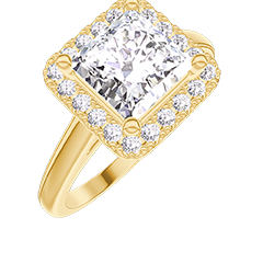 Bague Or jaune 18 carats - Diamant synthétique Princesse 1 carat - Halo Diamant synthétique