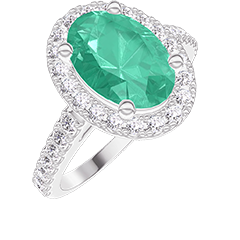 Bague Or blanc 18 carats - Émeraude Ovale 1 carat - Halo Diamant - Sertissage Diamant