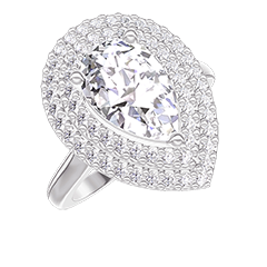 Pourquoi nous faire confiance ? « L'ATELIER » Nº 1344546 Bague Or blanc 9 carats - Diamant synthétique Poire 1 carat - Halo Diamant synthétique