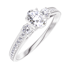 Pourquoi nous faire confiance ? « L'ATELIER » Nº 180328 Bague Or blanc 9 carats - Diamant synthétique Ovale 0.3 carat - Pierres de côté Diamant synthétique - Sertissage Diamant synthétique