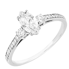Pourquoi nous faire confiance ? « L'ATELIER » Nº 182927 Bague Or blanc 18 carats - Diamant synthétique Marquise 0.5 carat - Pierres de côté Diamant synthétique - Sertissage Diamant synthétique