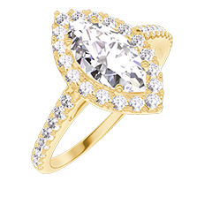 « L'ATELIER » Nº 190246Bague Or jaune 9 carats - Diamant synthétique Marquise 0.5 carat - Halo Diamant synthétique - Sertissage Diamant synthétique