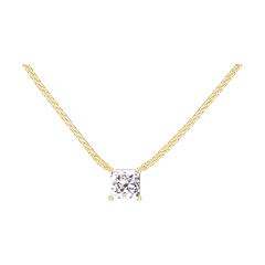 Avec chaîne avec double position 42cm et 45cm en or 9 carats. 1 diamant : 0.3 carat - Or jaune (9 carats = 375/1000): 2.4 g. Diamant : 1 - Total: 0.3 carat Infos techniques