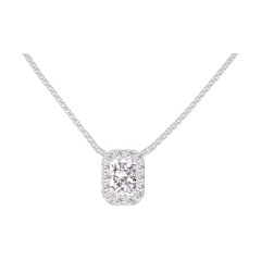 Collier Or blanc 9 carats - Diamant Rectangle 0.3 carat - Halo Diamant - Chaîne Vénitienne