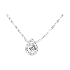 Collier Or blanc 9 carats - Diamant Poire 0.3 carat - Halo Diamant - Chaîne Vénitienne
