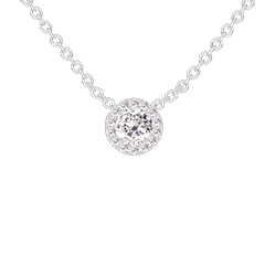 Pourquoi nous faire confiance ? « L'ATELIER » Nº 201643 Collier Or blanc 18 carats - Diamant synthétique Rond 0.3 carat - Halo Diamant synthétique - Chaîne Forçat