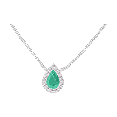 Collier Or blanc 9 carats - Émeraude Poire 0.3 carat - Halo Diamant - Chaîne Vénitienne