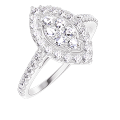 « L'ATELIER » Nº 211647Bague Or blanc 18 carats - Cluster de diamants naturels Marquise équivalent 0.5 - Halo Diamant - Sertissage Diamant