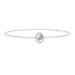 Bracelet Or blanc 9 carats - Diamant Ovale 0.3 carat - Chaîne Forçat