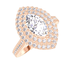 Bague Or rose 18 carats - Diamant synthétique Marquise 0.5 carat - Halo Diamant synthétique - Sertissage Diamant synthétique
