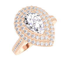Bague Or rose 18 carats - Diamant synthétique Poire 0.5 carat - Halo Diamant synthétique - Sertissage Diamant synthétique