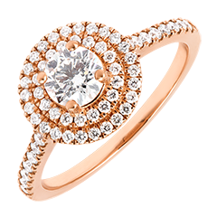 Bague Or rose 18 carats - Diamant Rond 0.5 carat - Halo Diamant - Sertissage Diamant