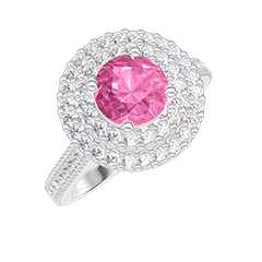 « L'ATELIER » Nº 415845Bague Or blanc 18 carats - Saphir rose Rond 0.5 carat - Halo Diamant - Sertissage Diamant