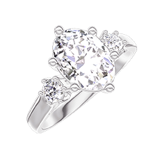 Bague Or blanc 18 carats - Diamant synthétique Ovale 1 carat - Pierres de côté Diamant synthétique