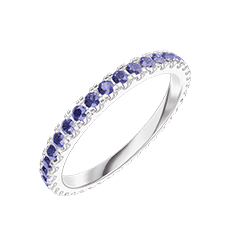 « L'ATELIER » Nº 800280Alliance Or blanc 9 carats - Tour complet Microsertis Saphir bleu 0.53 carat