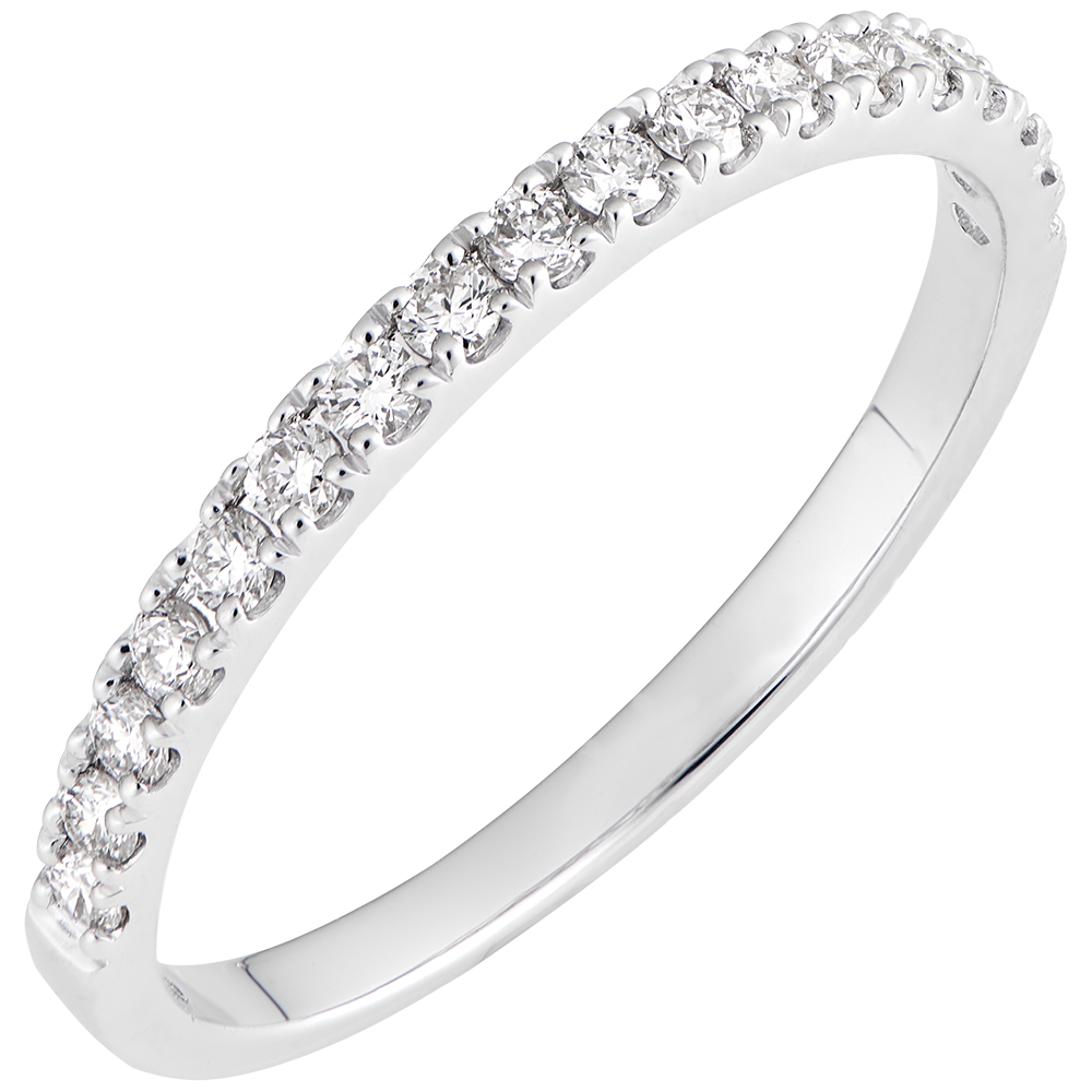 Une alliance semi pavée, classique et intemporelle, véritable incontournable de la bijouterie.