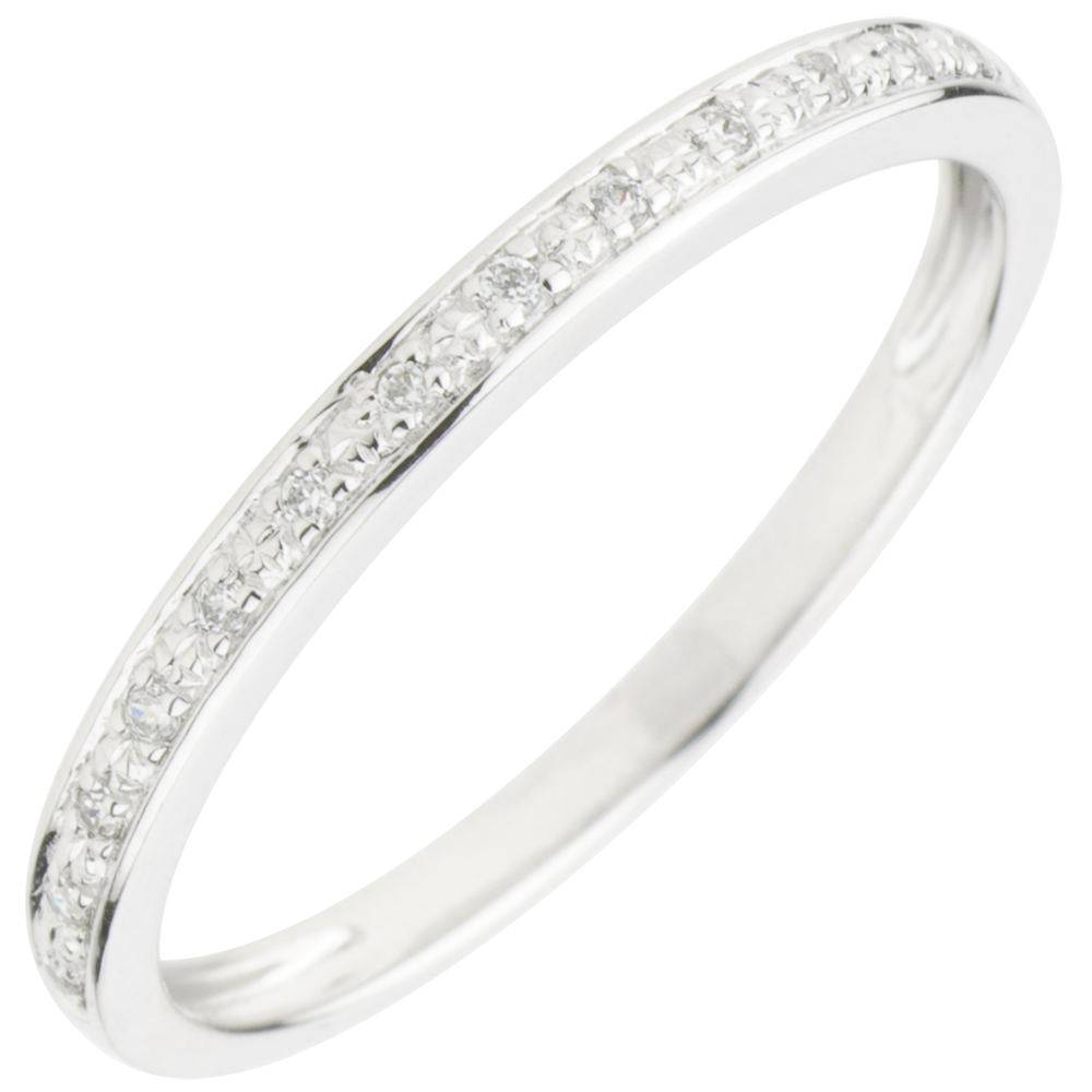 Une alliance or blanc sertie grain élégante et intemporelle. Cette alliance de mariage est idéale pour accompagner une bague de fiançailles ou bien se porter seule.