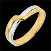 Un anneau d'or blanc est enlacé avec passion par un ruban d'or jaune.
