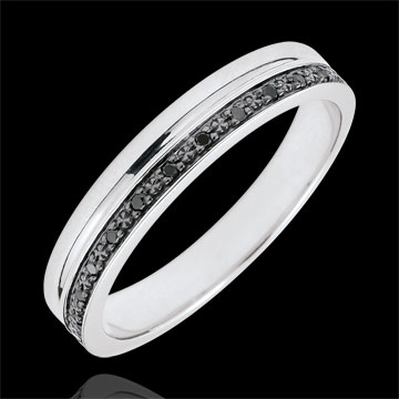 Une alliance de mariage en or blanc sertie de diamants noirs pour femme délicate et élégante.