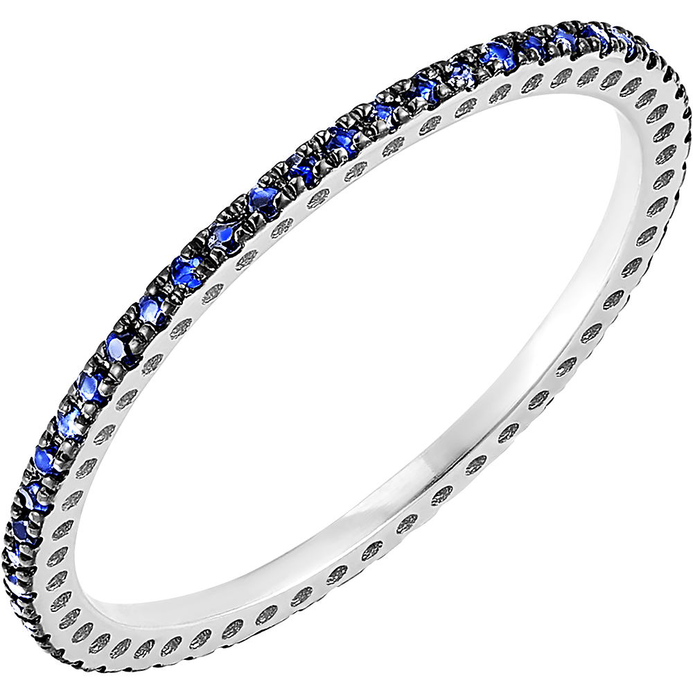 Un anneau fin et délicat en or blanc 9 carats, serti en tour complet de 52 saphirs bleus d'une qualité Very Good.