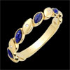 Une alliance moderne en or jaune où alternent avec raffinement des navettes en Lapis Lazulis et en diamants. Cette bague peut aussi être portée en bague d'exception. 5 diamants : 0.03 carat - Or jaune (9 carats = 375/1000): 1.8 g. Diamant : 5 - Lapis-lazuli : 6 - Total: 0.6 carat Plus dimensions