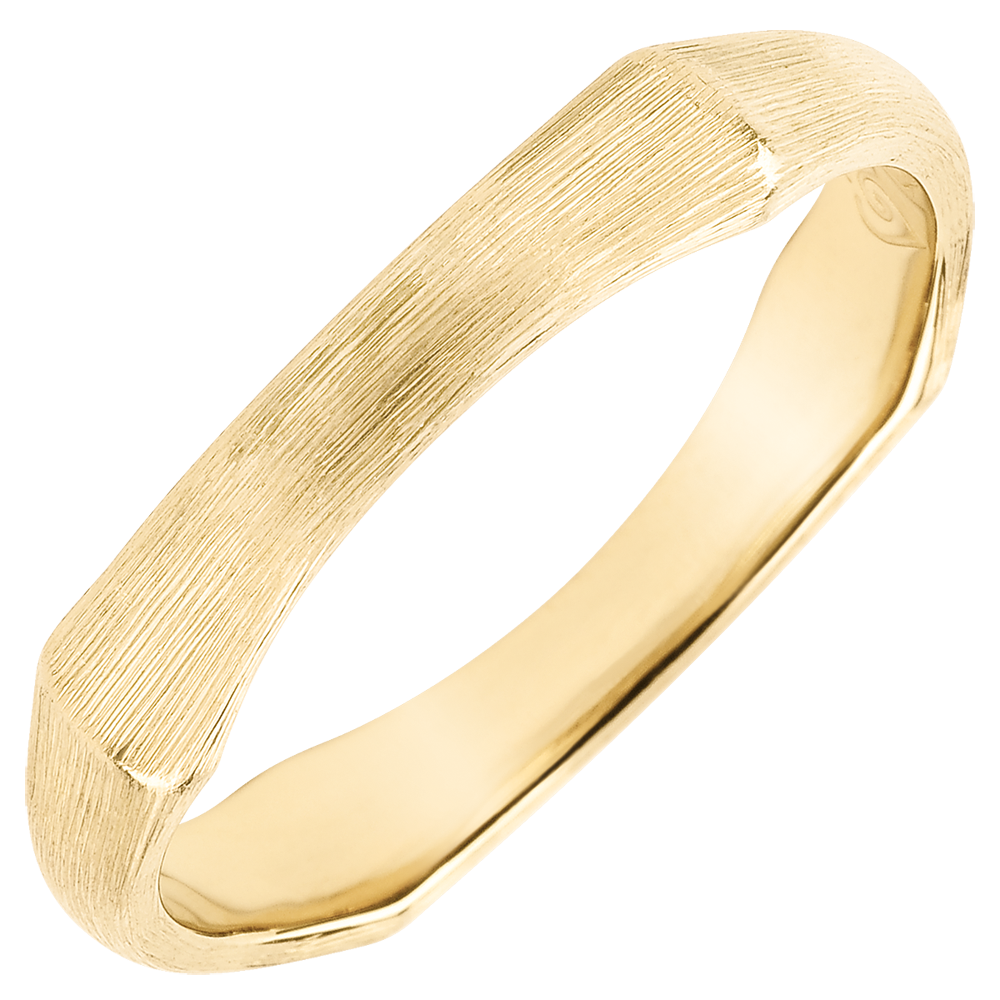 Une branche de bambou souple et solide se métamorphose en un anneau d'or jaune brossé éternel. Le travail à la main de la finition matte lui confère un aspect naturel au réalisme saisissant.