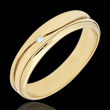 Bague Amour - Alliance homme or jaune 9 carats - diamant 0.022 carat