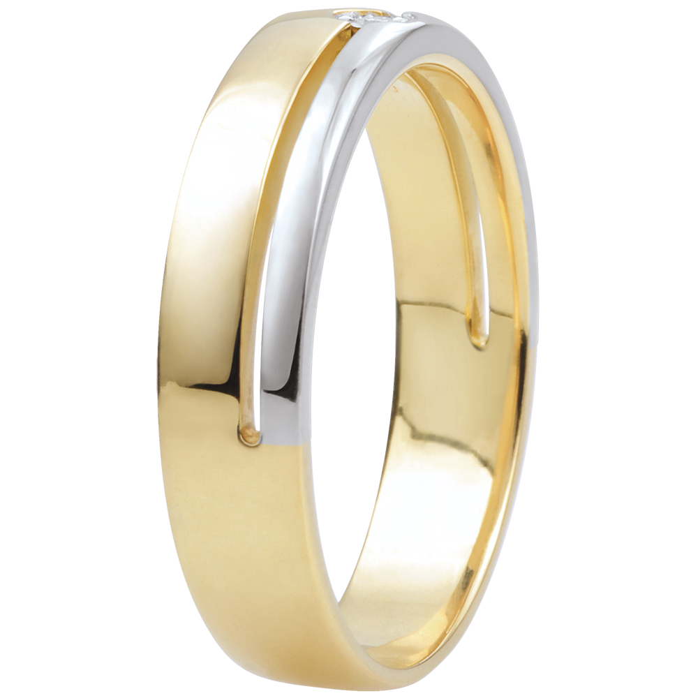 L’alliance bicolore symbolise l’union de deux éléments complémentaires, souvent or blanc et or jaune, reflétant l’harmonie et la complémentarité dans le couple.