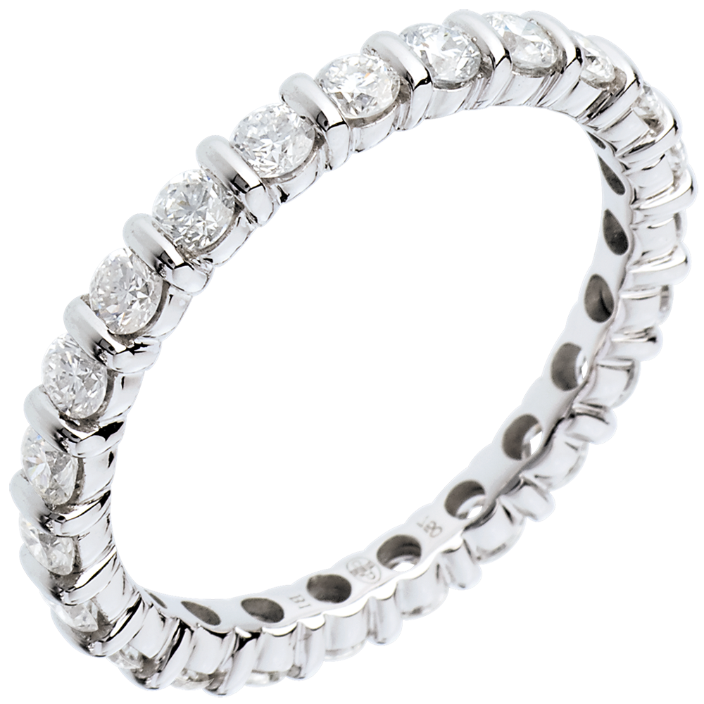 Alliance or blanc 18 carats pavée - serti barrettes tour complet - 1.14 carats - 22 diamants