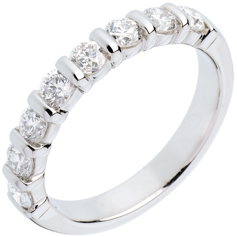 Alliance or blanc 18 carats semi pavée - serti barrettes - 0.75 carats - 8 diamants