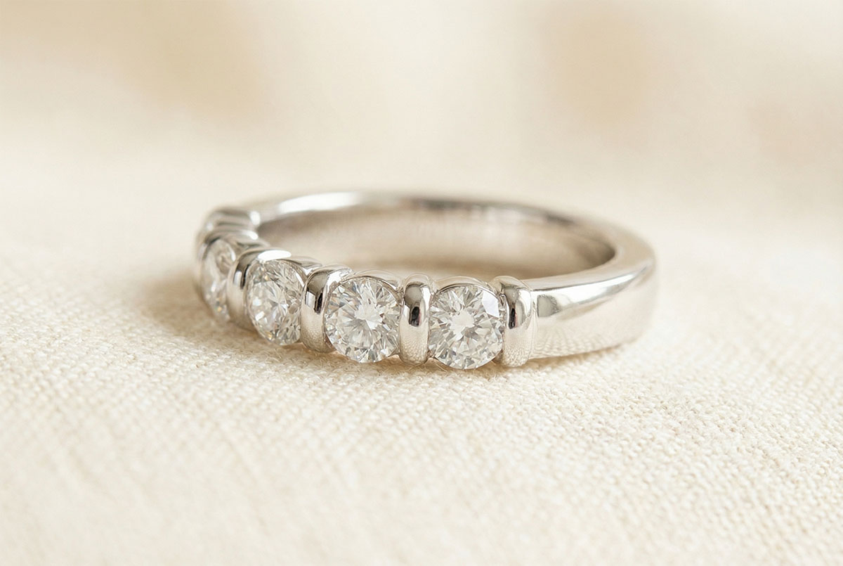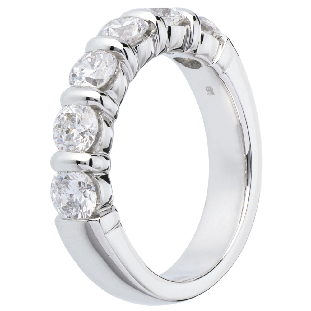 Alliance or blanc 18 carats semi pavée - serti barrettes - 1.5 carats - 6 diamants