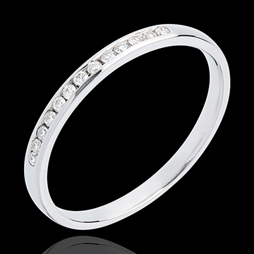 Alliance or blanc 9 carats semi pavée - serti rail - 13 diamants