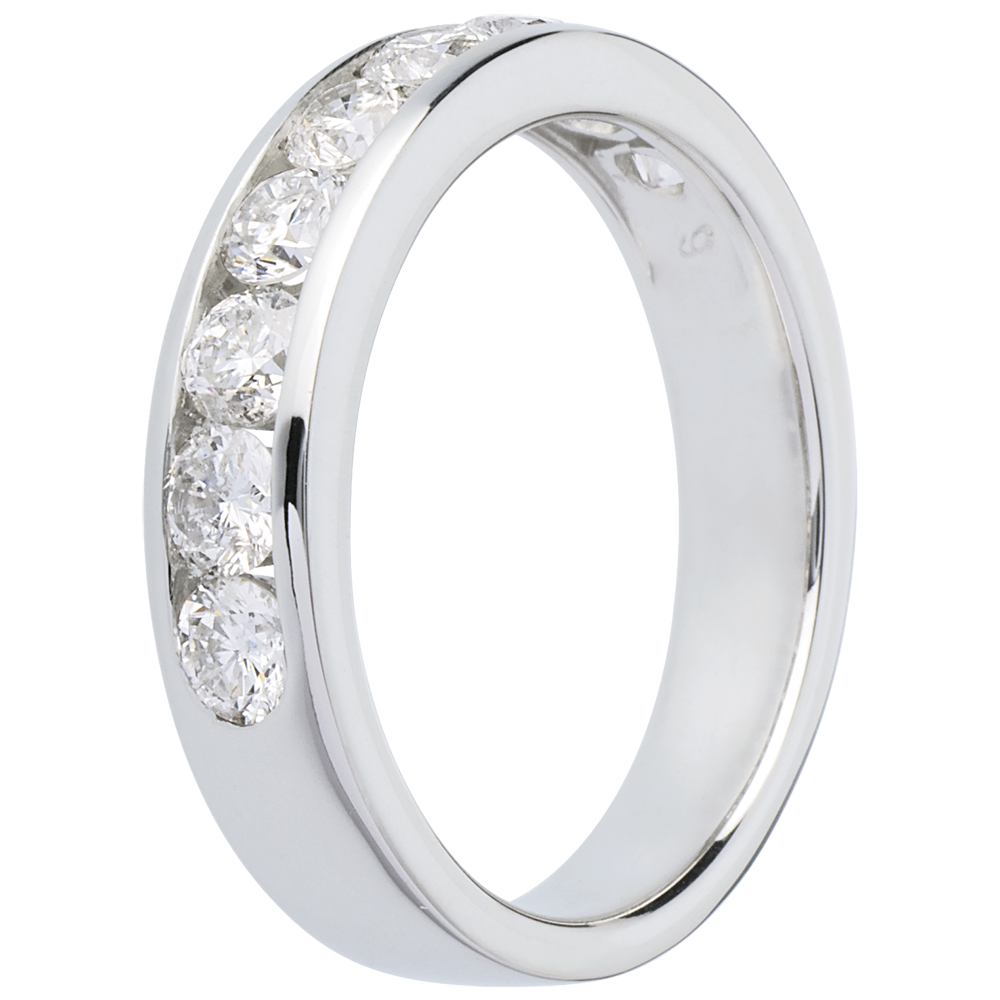 Alliance or blanc 18 carats semi pavée - serti rail - 1 carats - 9 diamants