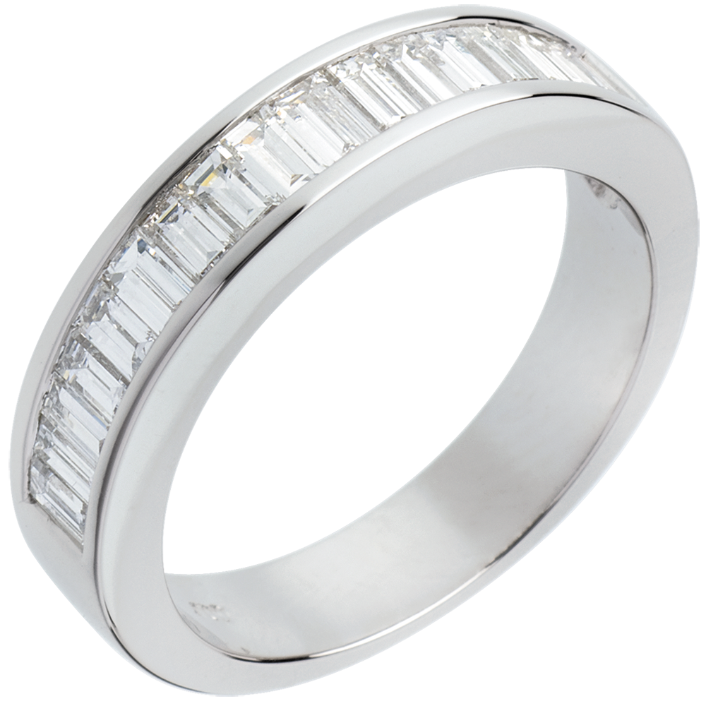 Alliance or blanc 18 carats semi pavée - Diamants taille baguette sertis rail - 1 carat