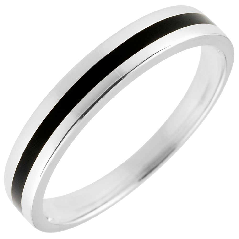Alliance or Homme Clair Obscur - Une ligne - or blanc 9 carats et laque noire