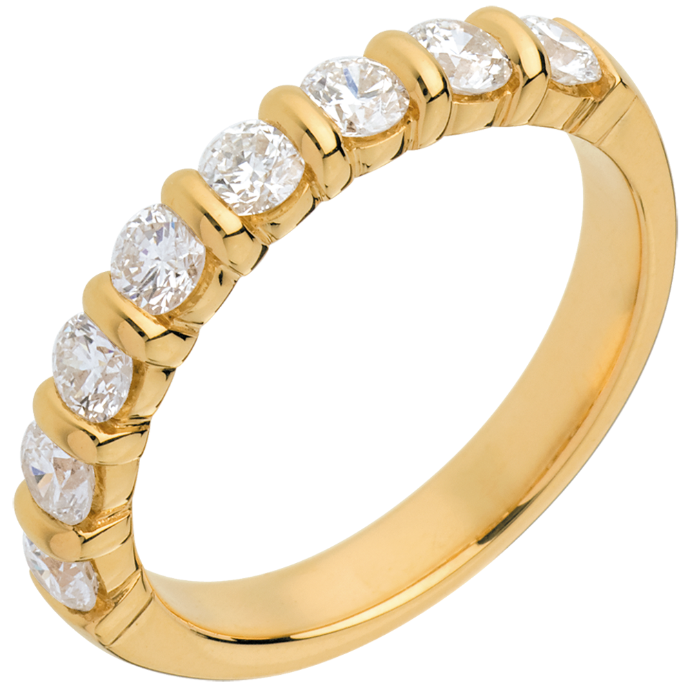 Alliance or jaune 18 carats semi pavée - serti barrettes - 0.75 carats - 8 diamants