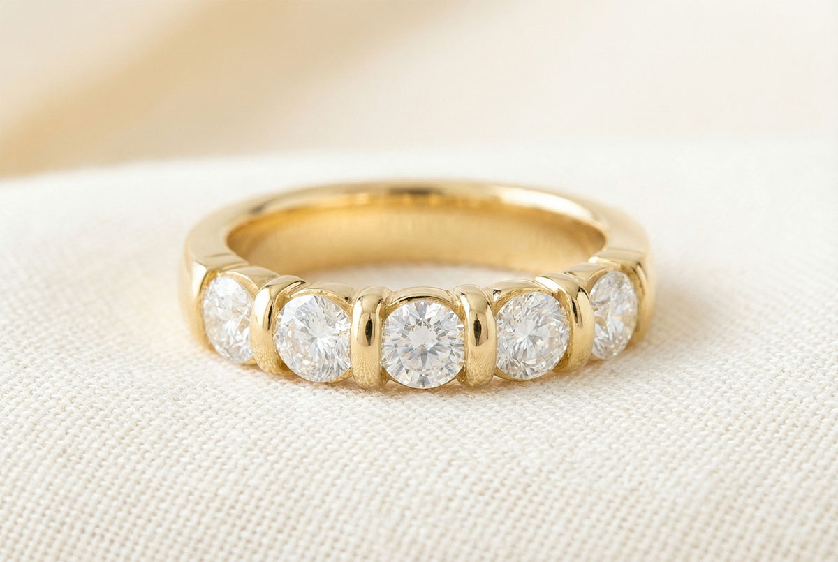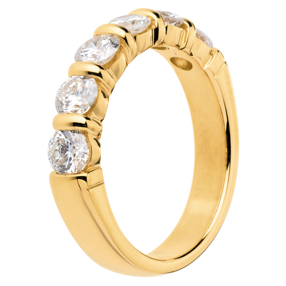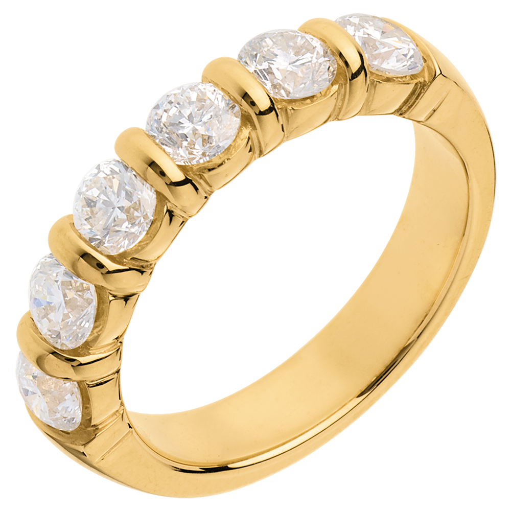 Alliance or jaune 18 carats semi pavée - serti barrettes - 1.5 carats - 6 diamants