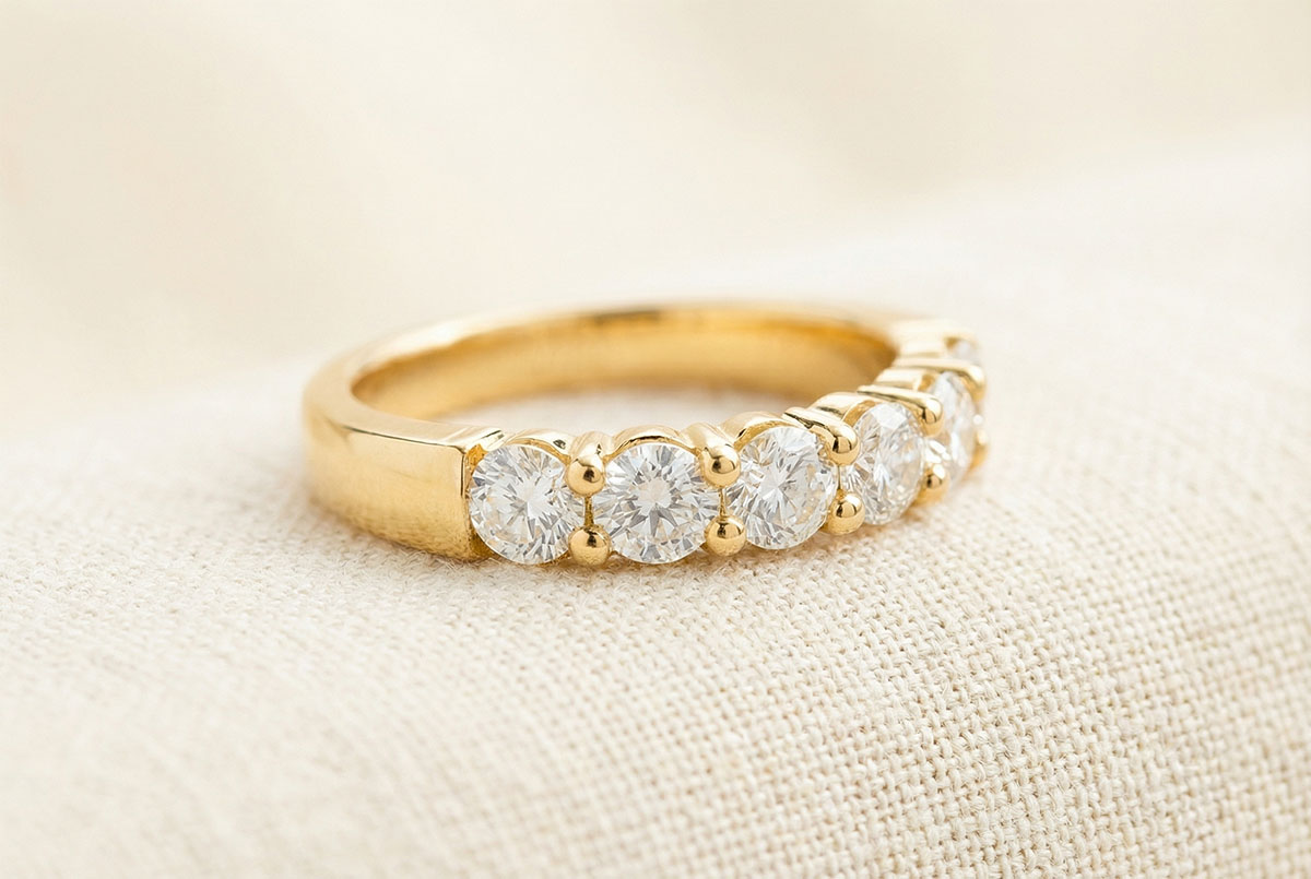 Alliance or jaune 18 carats semi pavée - serti griffes - 1.2 carats - 7 diamants