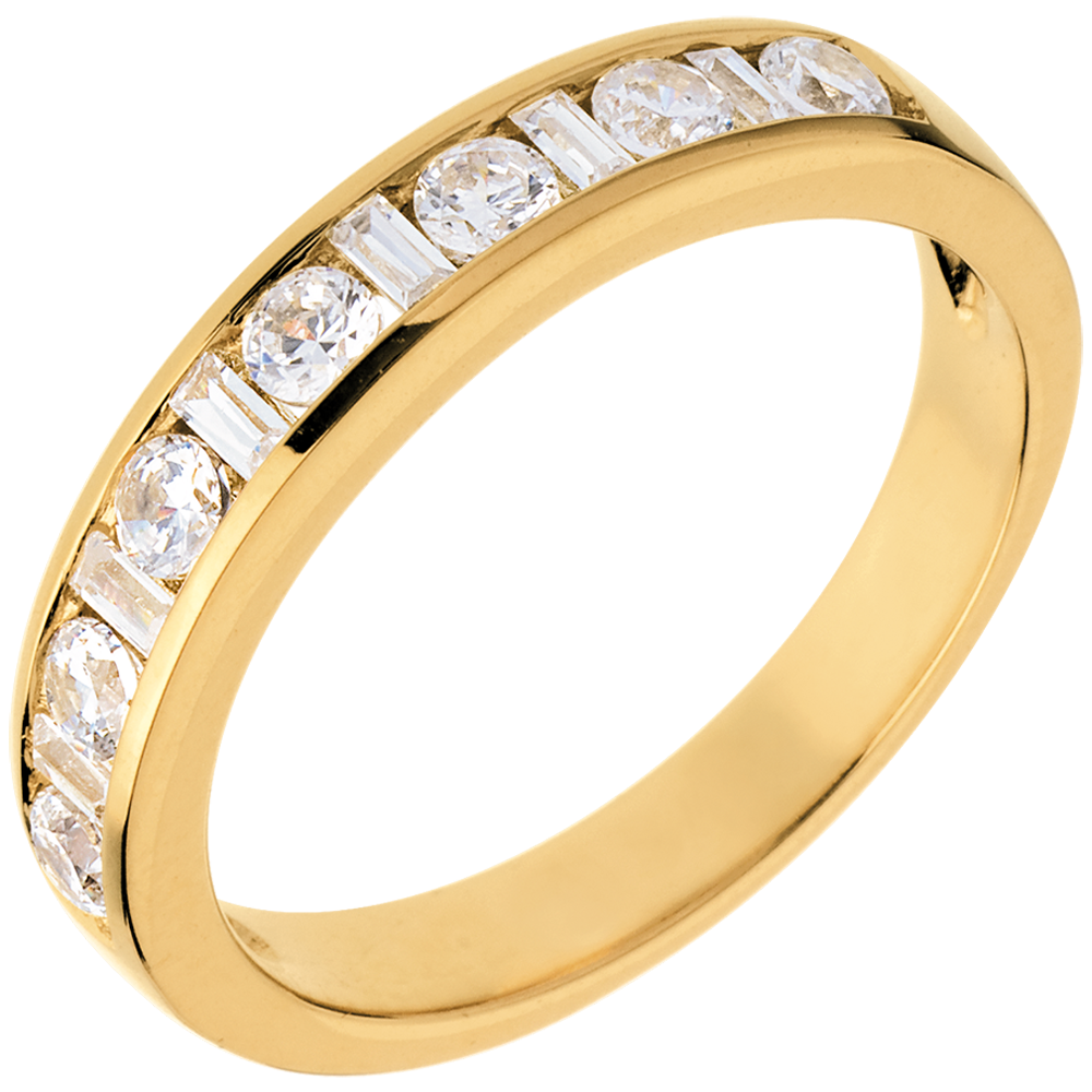 Alliance or jaune 18 carats semi pavée - serti rail - 0.57 carats - 13 diamants