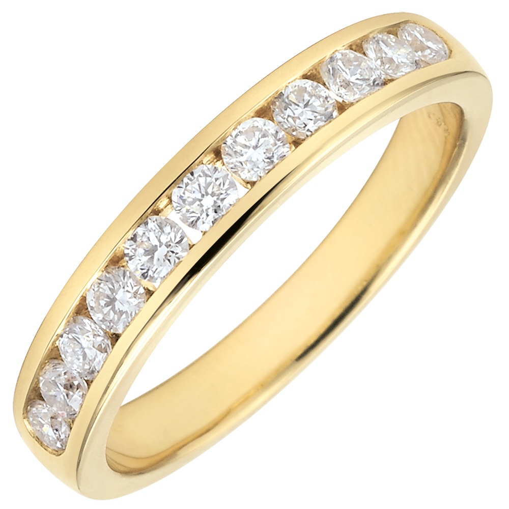 Alliance or jaune 18 carats semi pavée - serti rail - 0.4 carat - 11 diamants