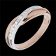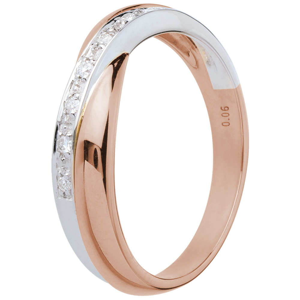Une alliance or rose chevauchée d'un anneau or blanc semi pavé. Un alliage plein d'équilibre et d'harmonie.