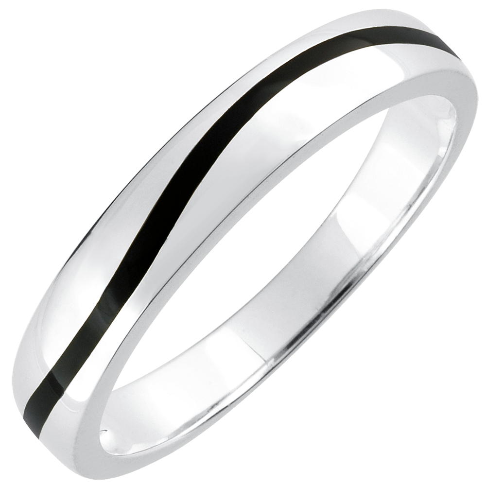 Alliance or Homme Clair Obscur - Courbe - or blanc 9 carats et laque noire