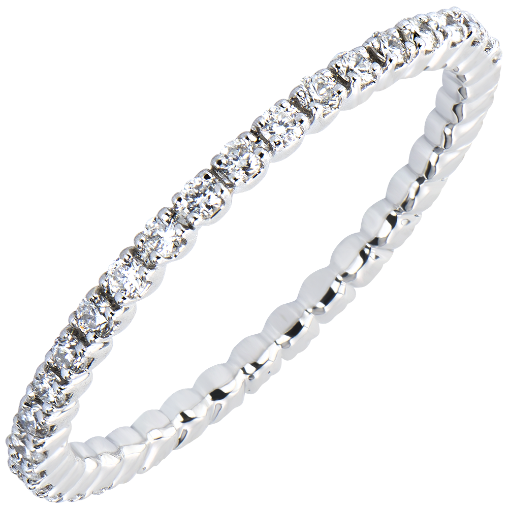 Une alliance couronnée d'un pavage de 37 diamants, serti griffes, qui en font une pièce incontournable de la joaillerie.