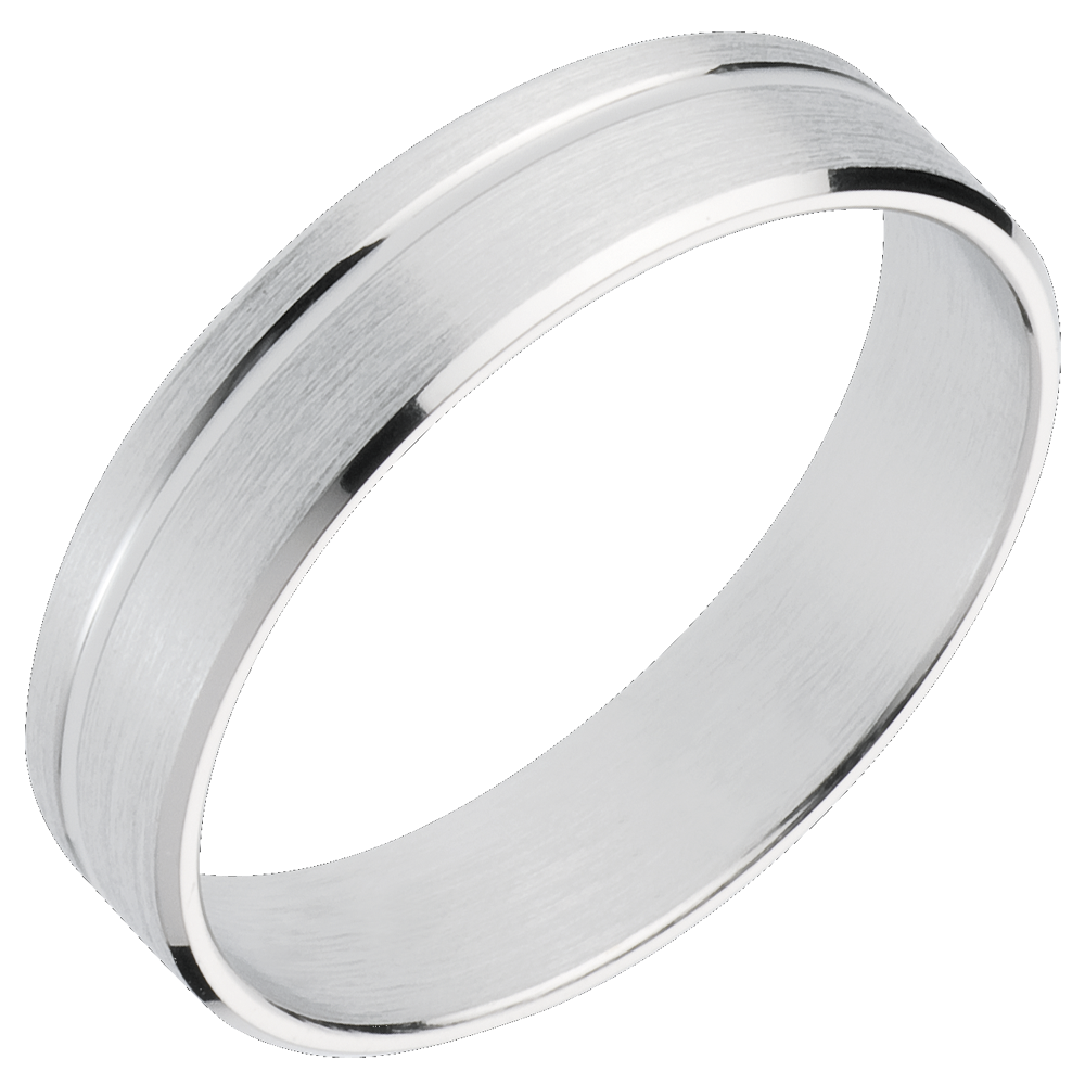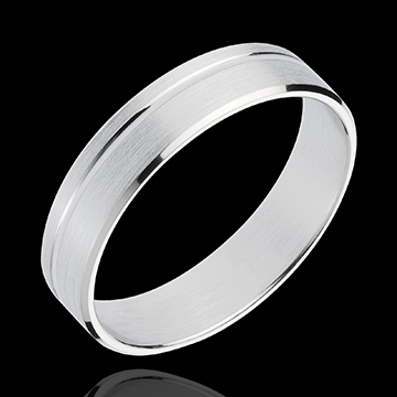 Jeu de lumière sur or blanc pour cet anneau brossé sillonné par des bandes brillantes