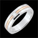 Cette alliance en or blanc est parée d'un diamant central et traversée par une bande en or rose pour un effet brillant et matte bimatière.
