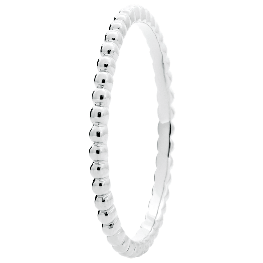 Une succession délicate de perles en or blanc 9 carats compose cette bague raffinée. Son design original s’inspire de la légende des perles d’or des sirènes, apportant une touche poétique à ce bijou.