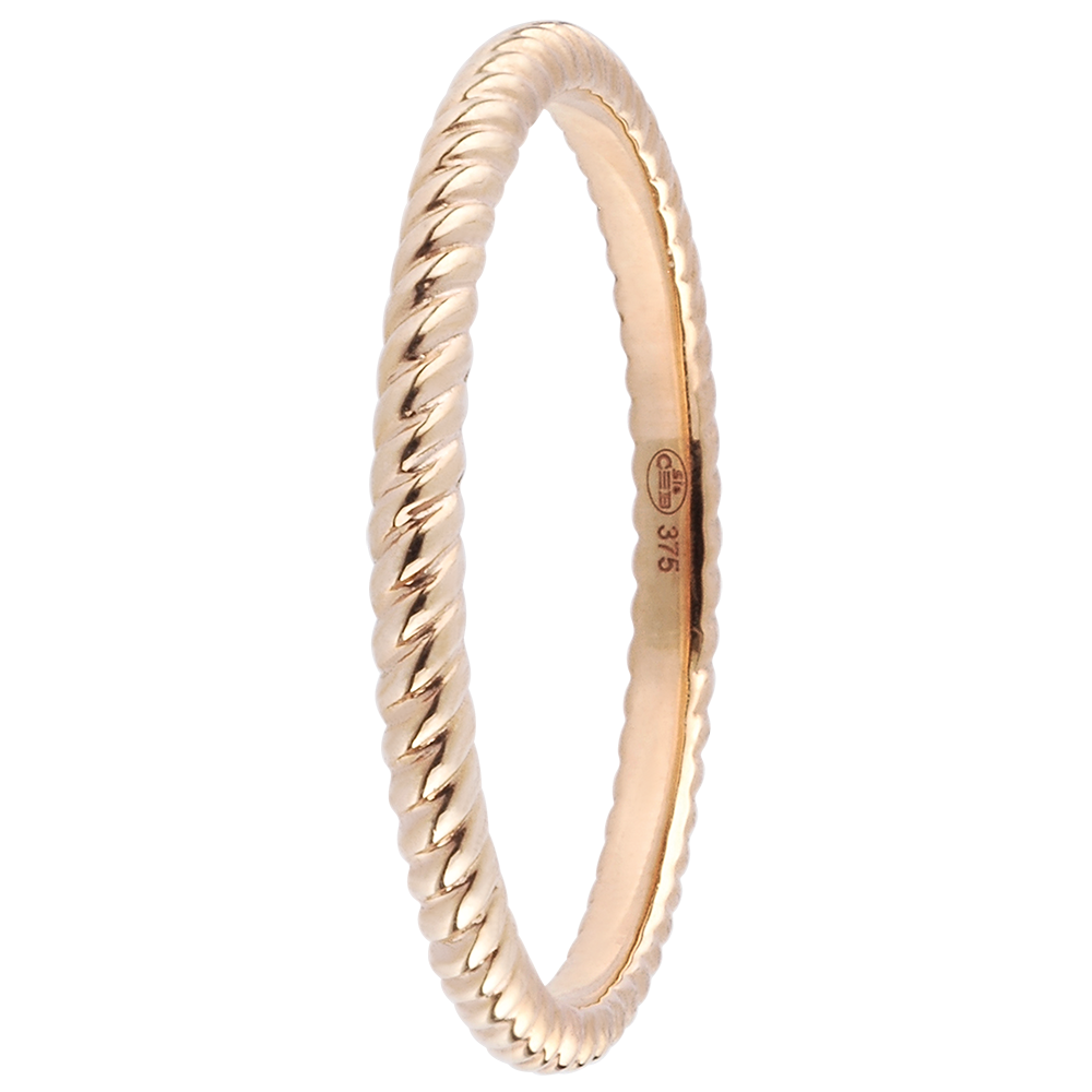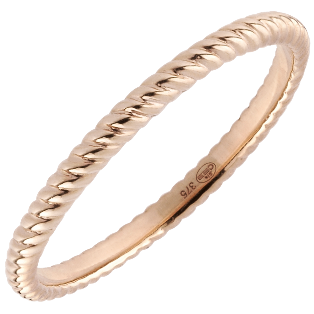 Un anneau en cordage d'or pour accompagner la bague de fiançailles assortie, un cordage d'une autre couleur d'or ou d'autres anneaux à motifs. Or rose (18 carats = 750/-): 1.4 g. Plus dimensions