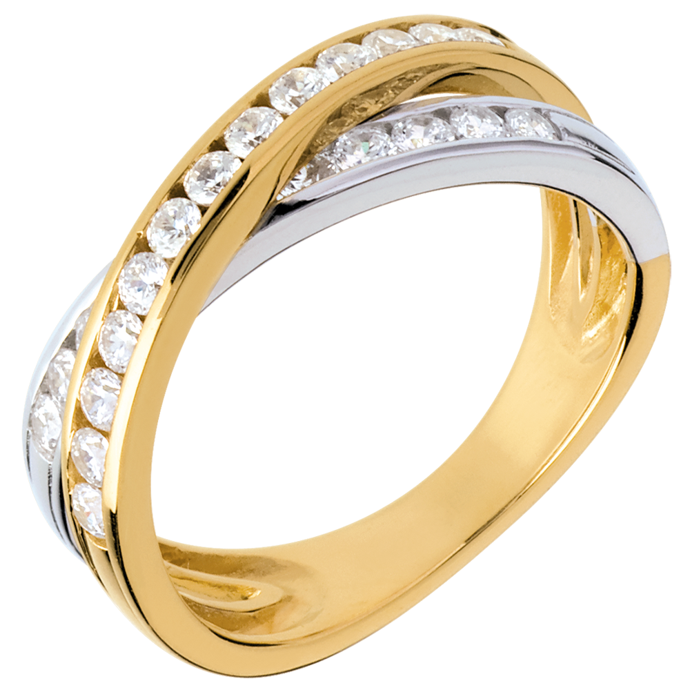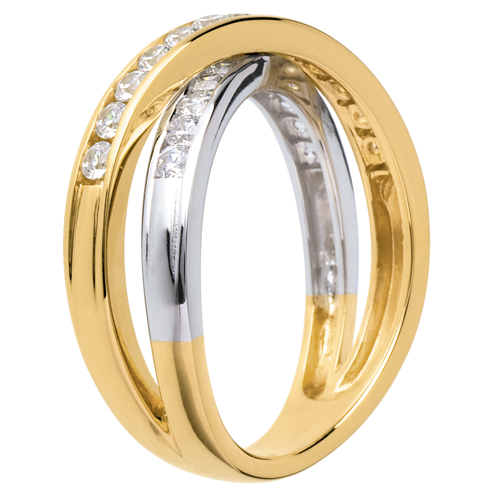 Anneau Tandem pavé (TGM) - 0.6 carats - 23 diamants - or blanc et or jaune 18 carats